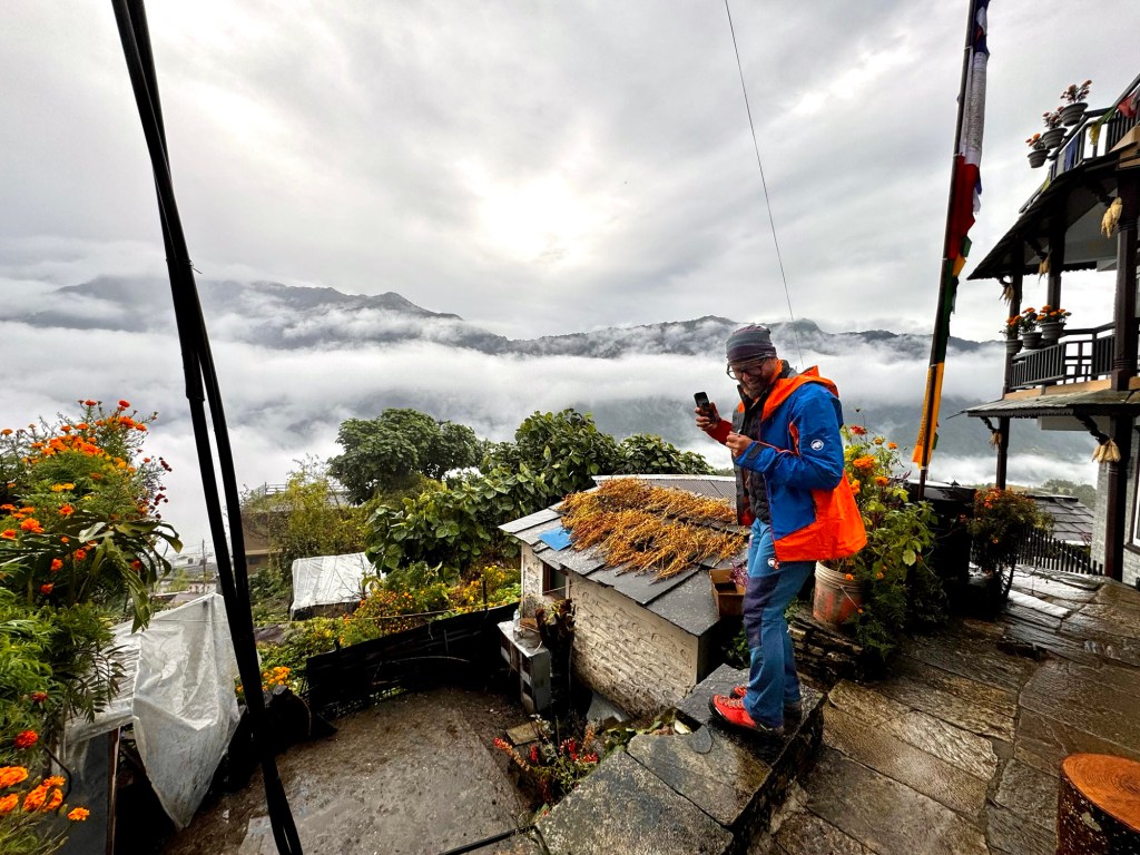 Następnego dnia, forsownym marszem w górę mijaliśmy mini – wioski ludu Gurungów zamieszkującego tutejsze doliny. Żyją niebywale skromnie, w zgodzie z naturą. Całe ich życie toczy się w pionie. Poruszają się po wyłożonych schodami, stromych ścieżkach, na wąskich tarasach hodują ryż i proso. Do Ghorepani położonego na 2900 m n.p.m. doszliśmy przed zmrokiem.